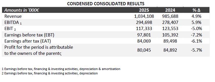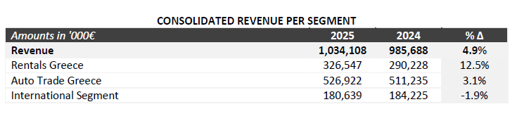 AUTOHELLAS Group announces the financial results for 2025, marking an all‑time high in Revenue, €1,034.1 million, recording an increase of 4.9%.
